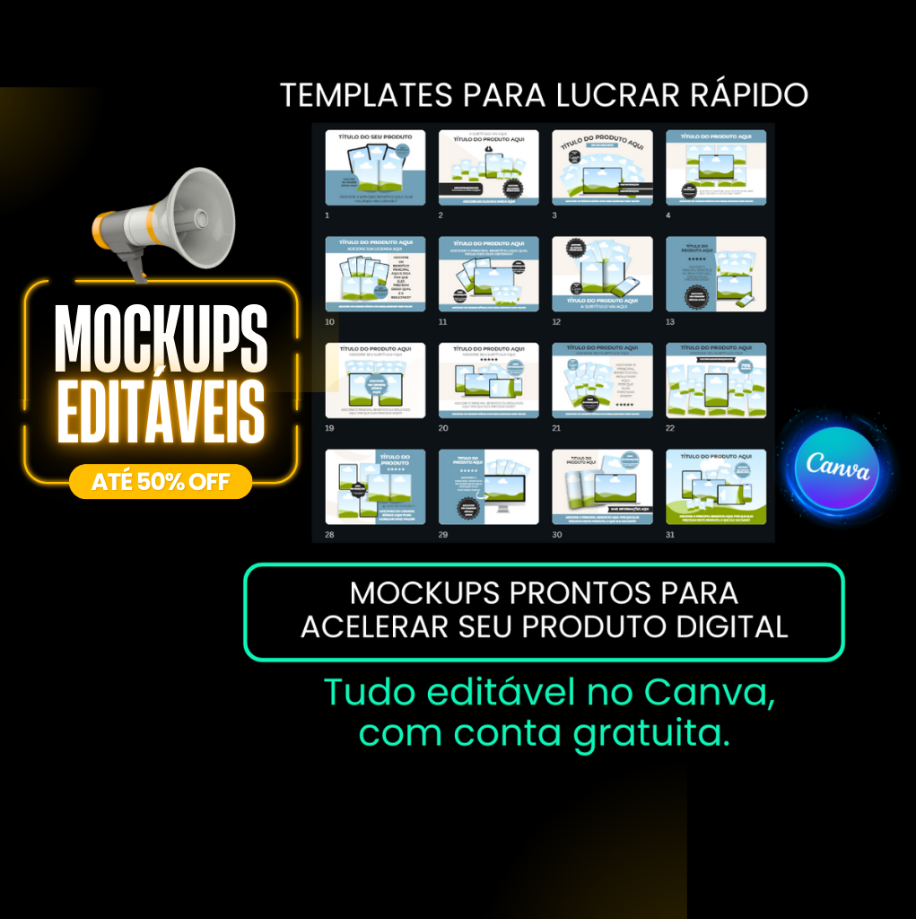Apresente seus produtos de forma profissional com mockups prontos e editáveis.