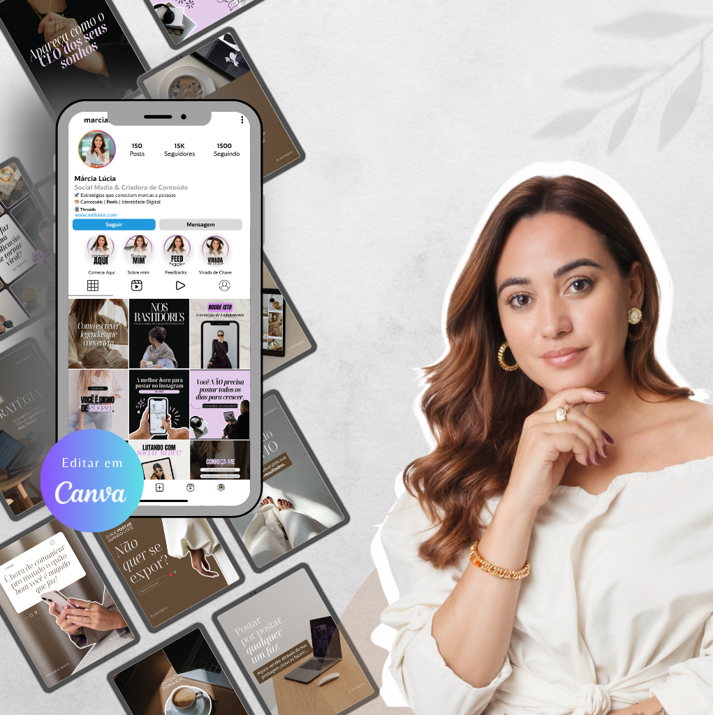 Artes prontas para feeds, stories e carrosséis, feitas para destacar empreendedoras no Instagram.