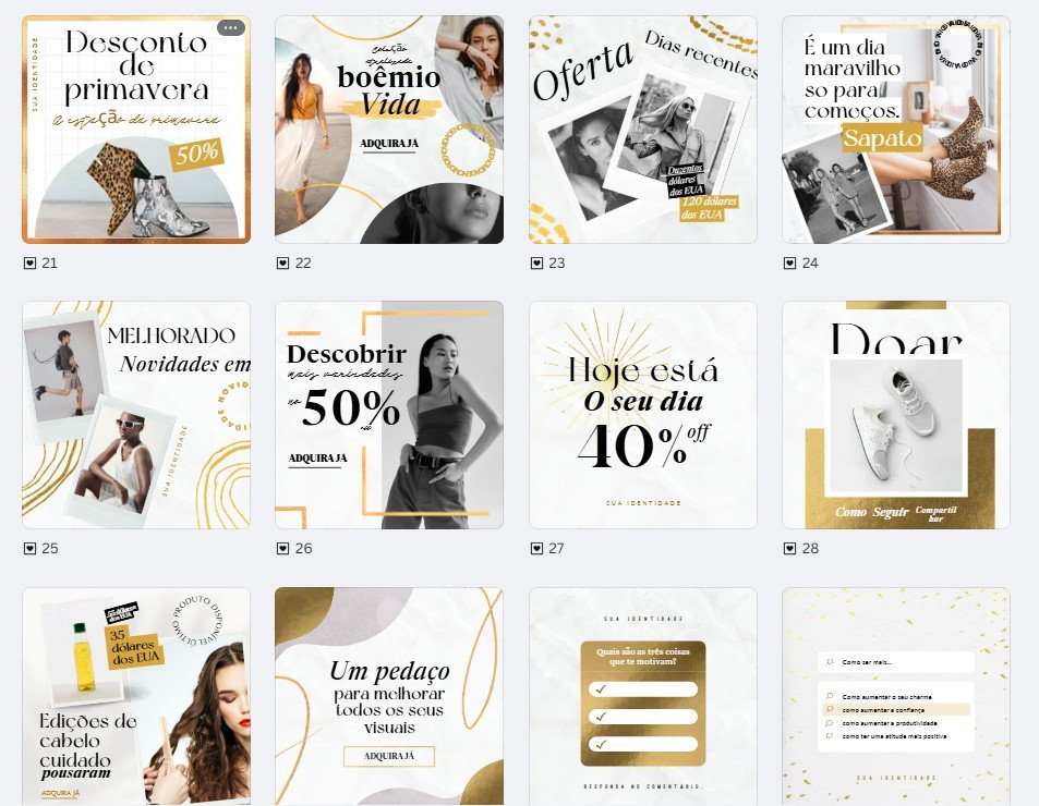 Um loja completa com kits de Posts, Carrosseis e Stories para redes sociais para todos os nichos, em formato CANVA e PHOTOSHOP. Para quem quer adquirir avulso ou acervo completo. Acesse agora